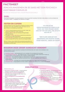 Bij MVT Arnhem begrijpen we hoe ingewikkeld en tegelijk hoe krachtig deze positie kan zijn. Daarom willen we jou, maar ook de mensen om je heen, helpen om die invloed zichtbaar te maken en handvatten te geven om er goed mee om te gaan. Om meer aandacht te vragen voor het opgroeien met psychische kwetsbaarheid in de familie hebben we een drietal factsheets gemaakt.